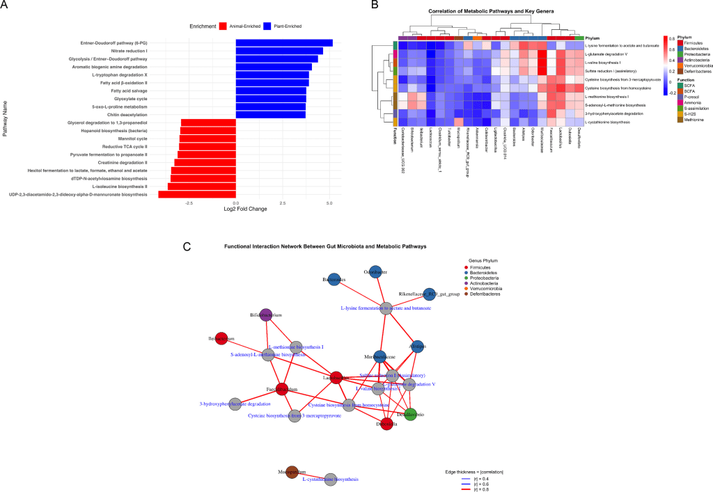 מחקר אינטגרטיבי שפורסם בינואר 26 פורסם בכתב העת ASN Journals ביקש לענות על השאלה: האם מקור החלבון – מהחי לעומת מהצומח – מייצר שינוי מהותי בתפקוד של המיקרוביום (אוכלוסיית חיידקי המעי). המחקר נערך באמצעות ניתוח מחדש של נתוני עומק גנטיים (16S rRNA) מעשרה מחקרי התערבות מבוקרים, תוך שימוש באלגוריתמים מתקדמים של למידת מכונה (Machine Learning). החוקרים השתמשו במודלים סטטיסטיים כדי לנטרל משתנים כמו גיל, מיקום גאוגרפי וריכוז החלבון, במטרה לבודד את השפעת המקור שלו בלבד. הממצאים היו חד-משמעיים: המודל הממוחשב הצליח לחזות בדיוק יוצא דופן של כמעט 98% את סוג התזונה של הנבדקים רק על סמך "טביעת האצבע" של החיידקים שלהם. נמצא כי חלבון מהצומח מעודד סביבה "סכרוליטית" – כזו המתמחה בפירוק סוכרים מורכבים וסיבים – המאופיינת בשגשוג של חיידקים כמו Muribaculaceae ו-Bacteroides. חיידקים אלו פועלים בסינרגיה עם המבנה הצמחי ומפעילים מסלולים של מיחזור חנקן וייצור מוגבר של חומצות שומן קצרות שרשרת (SCFAs) כגון ביוטיראט ופרופיונאט, המהווים את מקור האנרגיה המרכזי של תאי המעי ושומרים על שלמות המחסום המונע דליפת רעלנים לדם.