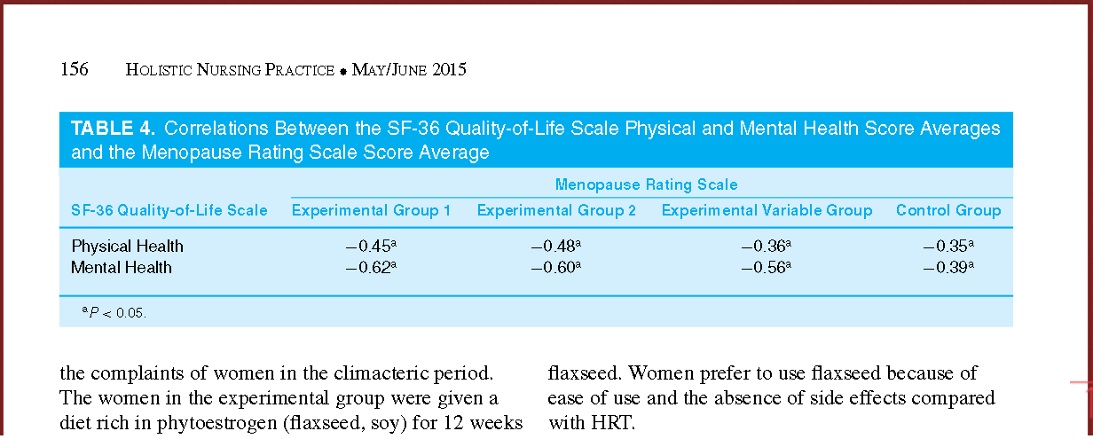 אבל מחקר נוסף שנחשפתי אליו לגבי פשתן, מוכיח את יעילות הפשתן על הסימפטומים של מנופאוזה ועל איכות החיים בתקופה הזו, לרבות סימפטומים של תחושת בעירה (flashes) ויובש בנרתיק…