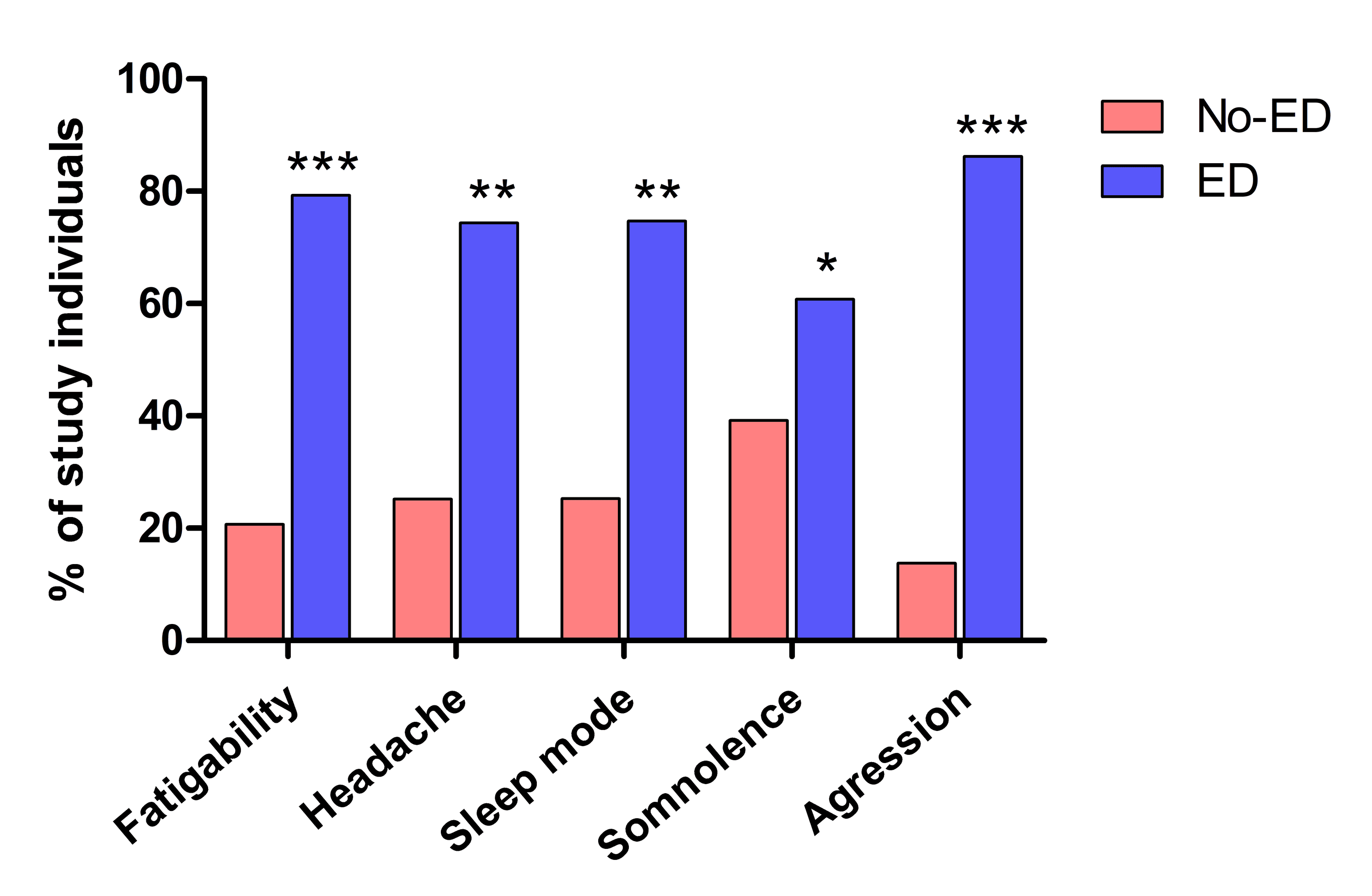 החוקרים ראו שאחוז גבוה יותר של השותים פיתחו טכיקרדיה (עליה בקצב הלב בזמן מנוח). בנוסף, לשותים היו שיעורים גבוהים יותר משמעותית של לחץ דם גבוה, דפיקות לב ואי נוחות בחזה בהשוואה לאלו שאינם שותים. כמו כן ראו שאצל אלה ששתו יותר היה שיעור גבוה יותר באופן מובהק של עייפות. הם היו בעלי סיכוי גבוה יותר לחוות ישנוניות, יותר כאבי ראש וגם היו בעלי נטיה גבוהה יותר לאגרסיביות לרבות פסיכוזה מאנית.
