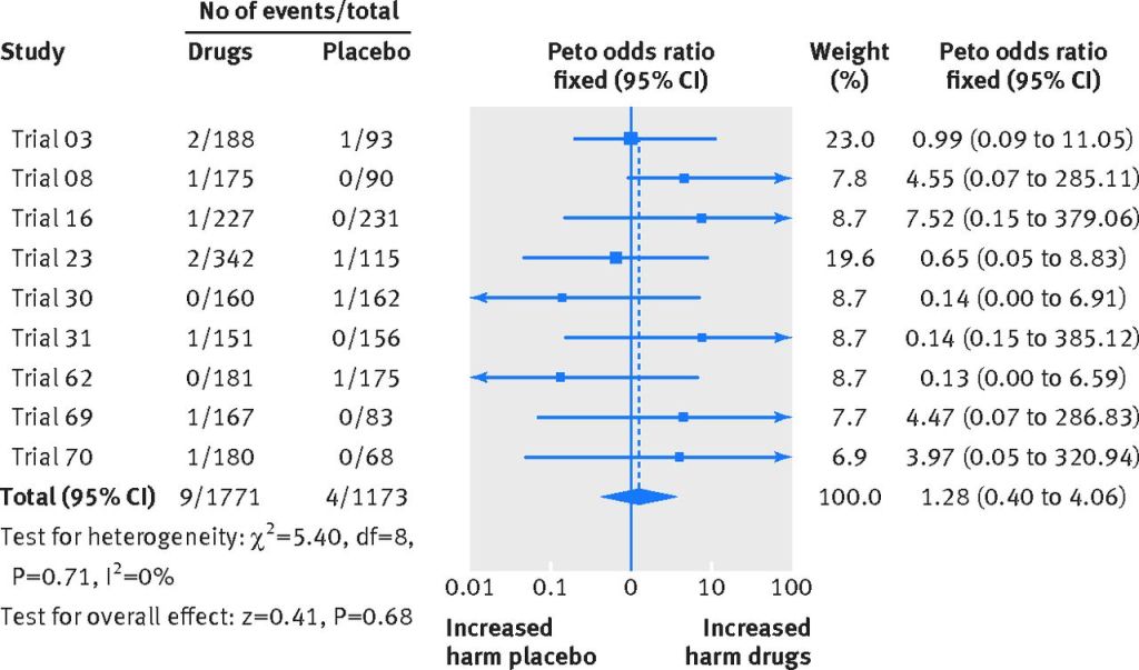 השימוש בתרופות נוגדות דיכאון קשור גם למגוון תופעות לוואי, בעוד שנתוני הניסויים הקליניים לרוב אינם מעריכים את התוצאות החשובות ביותר לחולים, אומרים הכותבים. ואין הבדל קליני רלוונטי בין תרופות אלו לבין פלצבו על דיכאון.