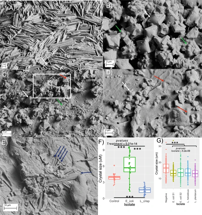 ראשית הם גידלו חיידקים באמצעות תאים המחקים את תנועת השתן בכליות. לאחר מכן הם הוסיפו את "מרכיבי הגלם" של אבנים בכליות, אוקסלט וסידן, כדי לראות מה קרה. הם ראו שמספר מבני גביש גדולים דמויי אבן נוצרו בחדרים שבו היו חיידקי E. coli. ניתוחים אחרים הראו שלא רואים שוני בין גבישים אלה לבין אבנים בכליות אנושיות. כמו כן הם ראו שלא נוצרו גבישים אלה ב"חדר גידול" בו נמצאים חיידקים ממשפחת לקטובצילוס. וב"חדר גידול" של שני מיני חיידקים אלה יחד ראו מבני גביש קטנים מאוד שהיו שונים מבחינה מבנית וכימית מאבנים בכליות, מה שמעיד על כך שלקטובצילוס חוסם איכשהו את יכולתו של E. coli ליצור אבנים בכליות.