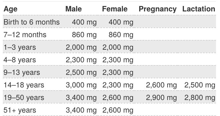 לגבי כמות אשלגן אין הנחיות ברורות, אבל יש כיוון מסוים.