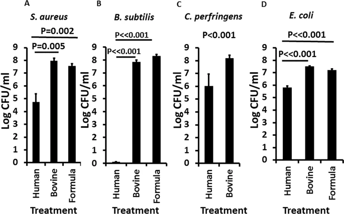 מחקר שפורסם בג'ורנל הרפואי Scientific Reports באוקטובר 2019. מצא שלחומצת שומן בינונית (glycerol monolaurate), הנמצאת בחלב אם (3000 מק"ג/מ"ל לעומת 150 בחלב פרה לעומת 0 בתחליפי חלב) יכולות אנטיבקטריליות/חיידקיות כנגד חיידקים אלימים