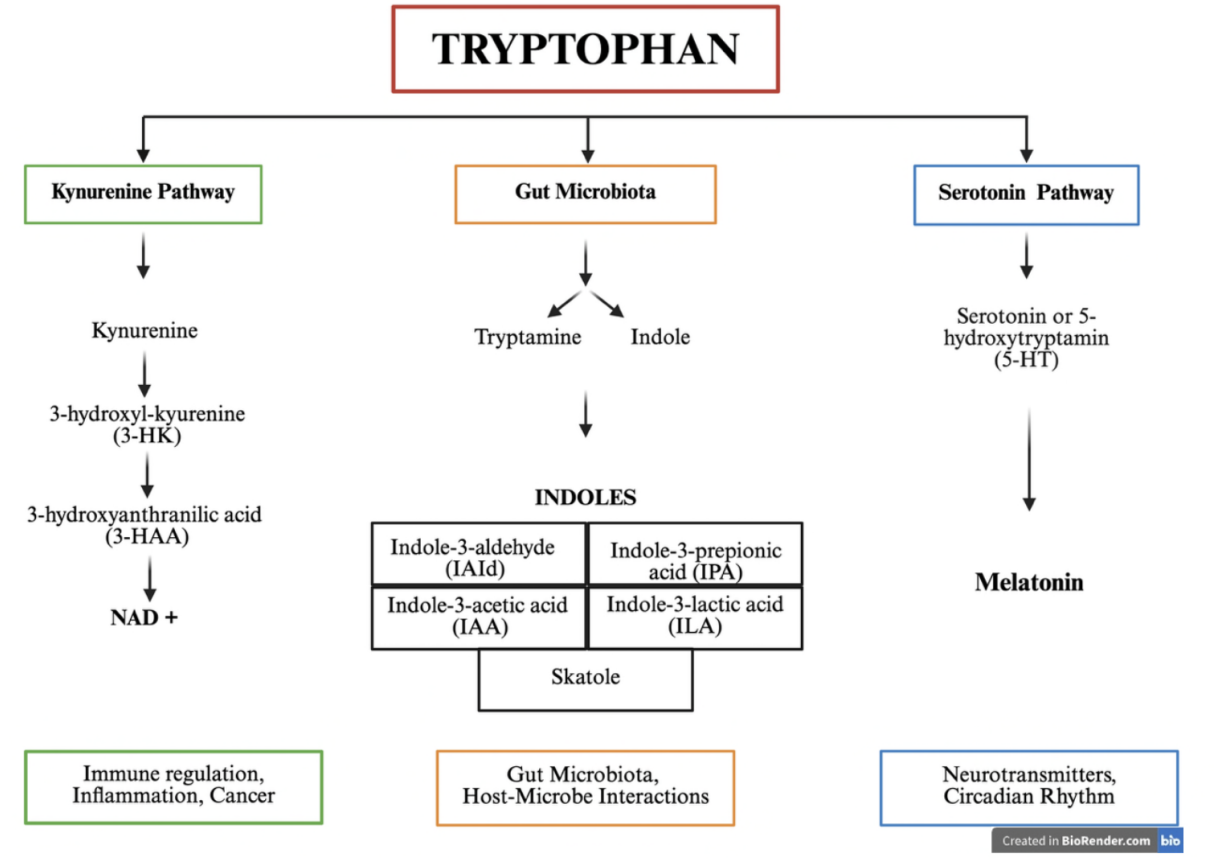 - הקשר לבריאות בגיל מבוגר: שיבושים במטבוליזם של הטריפטופן בשלבים מוקדמים אלה יכולים להוביל למחלות כרוניות בגיל מבוגר.