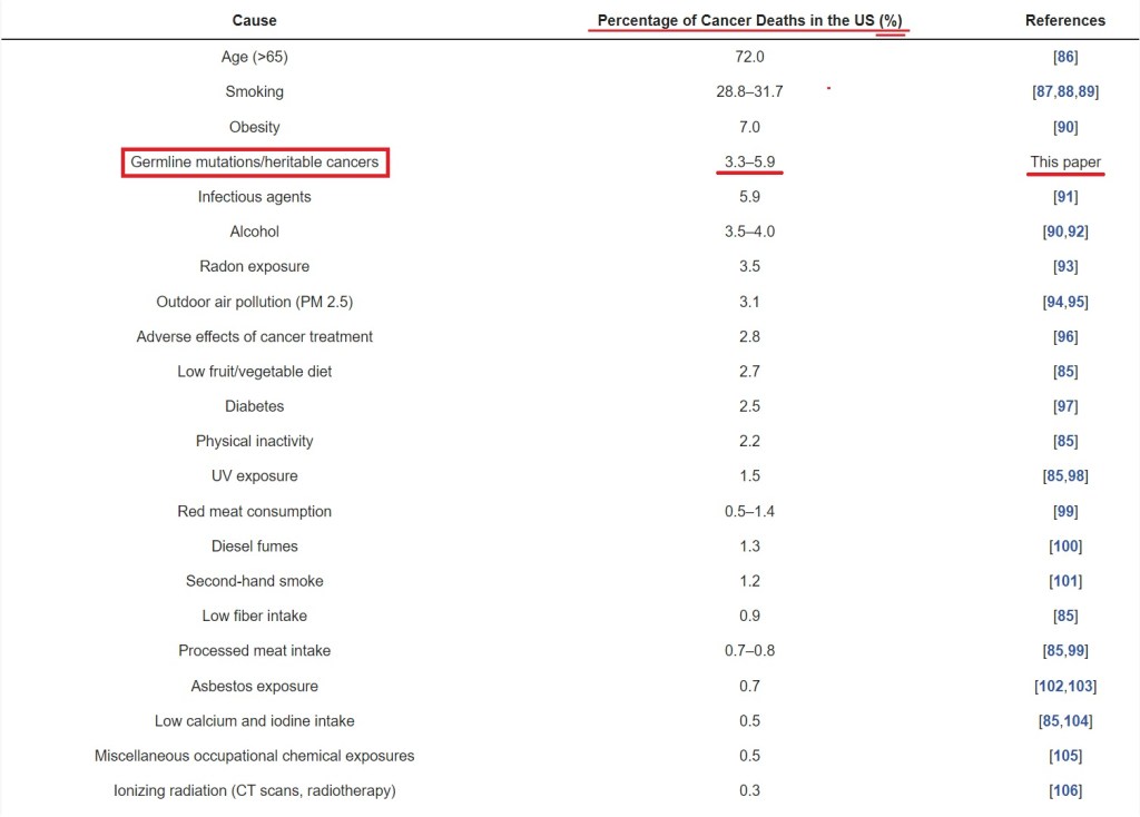 כבר בשנת 2008 פורסם מחקר בג'ורנל הרפואי springer pharmaceutical journals שבו הבינו שסרטן וגנטיקה הרבה יותר רחוקים מקרובים, ושבסך הכל 5-10% נמצאו קשורים לגנטיקה וכל השאר קשורים למזהמים סביבתיים ואורח חיים (הדברה (מזון), עישון, נפט, פלסטיק, תרופות, חשמל, כימיקלים, זיהום אויר, קרינה וכו'…)