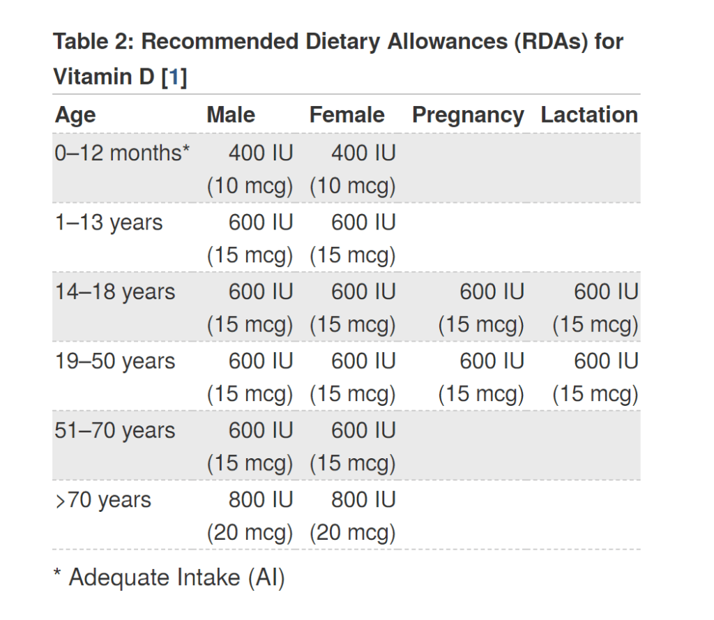 ההמלצה היומית המומלצת של ויטמין די נכון להיום היא 400 יחב"ל ליום עד גיל שנה ו- 600 יחב"ל עד גיל 70…