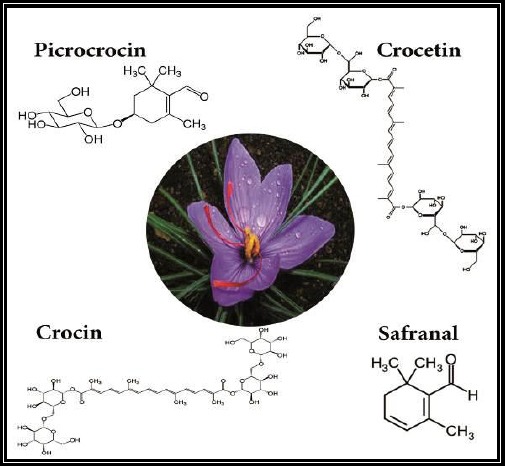 'פיקוקרוצין' הוא תוצר פירוק של זאקסנטין שהופך ל'ספרנאל 'במהלך תהליך האנזימטי. מלבד ה'ספרנאל' זוהו 60 תרכובות נדיפות בזעפרן.