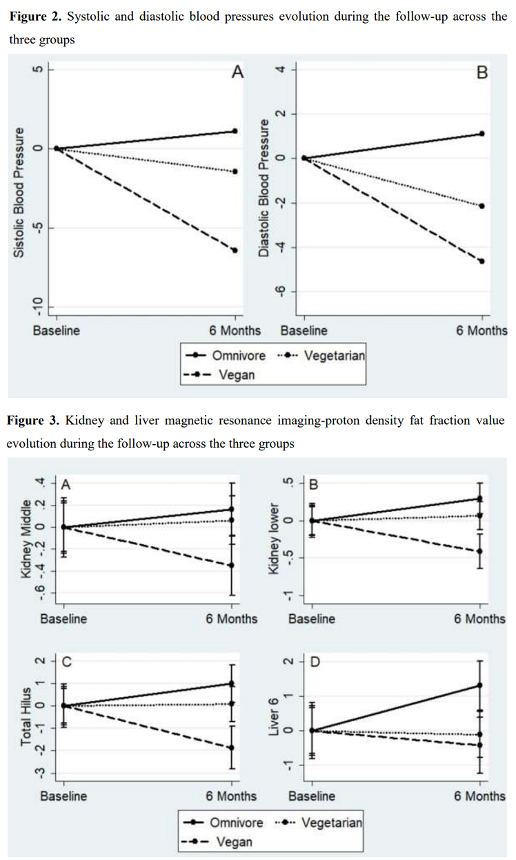 הממצאים הצביעו על כך שהתזונה הטבעונית קשורה לשיפורים מובהקים סטטיסטית בסטאטוזיס בכבד והכליות. בנוסף, משתתפים בתזונה טבעונית הראו ירידה בכולסטרול LDL ו-HDL ושיפורים בלחץ הדם הסיסטולי והדיאסטולי כאחד.