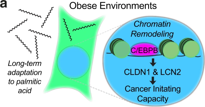 החוקרים גילו שהסביבה המשתנה סביב התא הסרטני, מגוף במשקל תקין לגוף בעל עודף משקל או השמנת יתר, דוחפת את התא הסרטני להסתגל. תגובה זו, הם אומרים, נגרמת על ידי משהו שנקרא חומצה פלמיטית (PA), שהיא שומן שכיח יותר בסוגי גוף שמנים. משמעות הדבר היא שגם בהיעדר מוטציות גנים חדשות, השמנת יתר מגדילה את הסיכון שייווצרו גידולים.