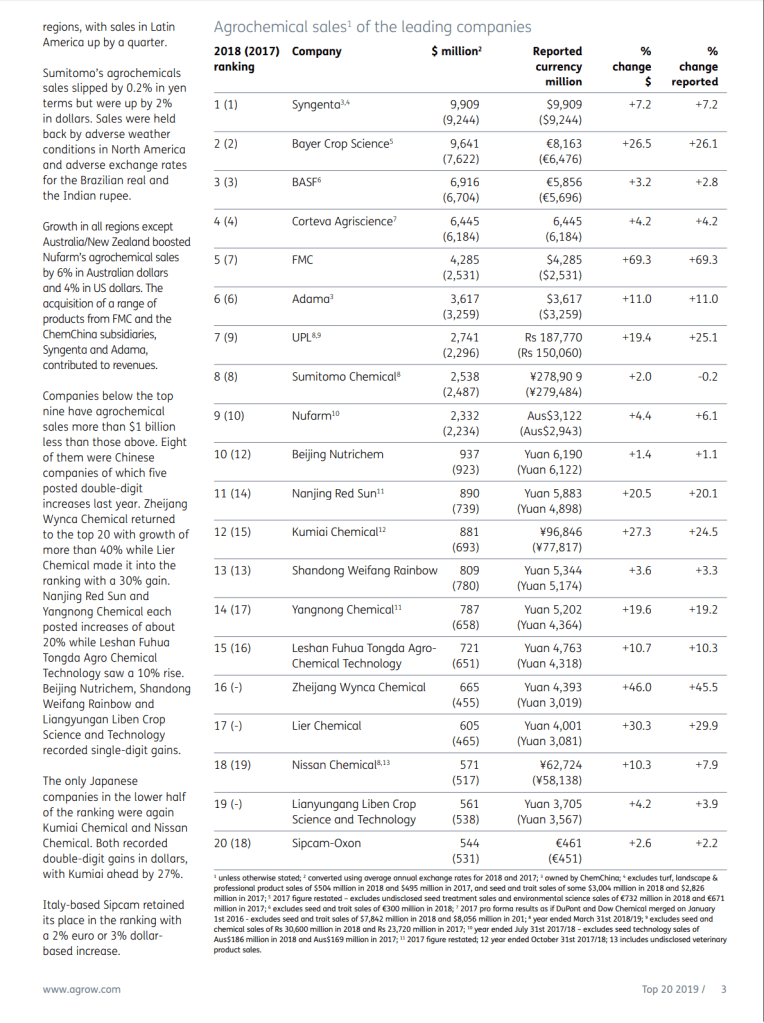 5 היצרניות הגדולות בעולם (BASF, Bayer, Corteva, FMC ו- Syngenta) של חומרי הדברה מרוויחות כל שנה מיליארדים של דולרים. יותר מ- 35% מההכנסות שלהם הן ממוצרים שהוגדרו מסוכנים (hazards) לבריאות האדם לבעלי החיים ולסביבה. כך עולה מנתונים של תערוכת החקלאות מאוקטובר 2019 שנערכה בשנגחאי Shanghai World Expo Exhibition and Convention Center שכל כולה עוסקת בחדשנות, מדע וטכנולוגיה של החקלאות העולמית. להלן המצגת.