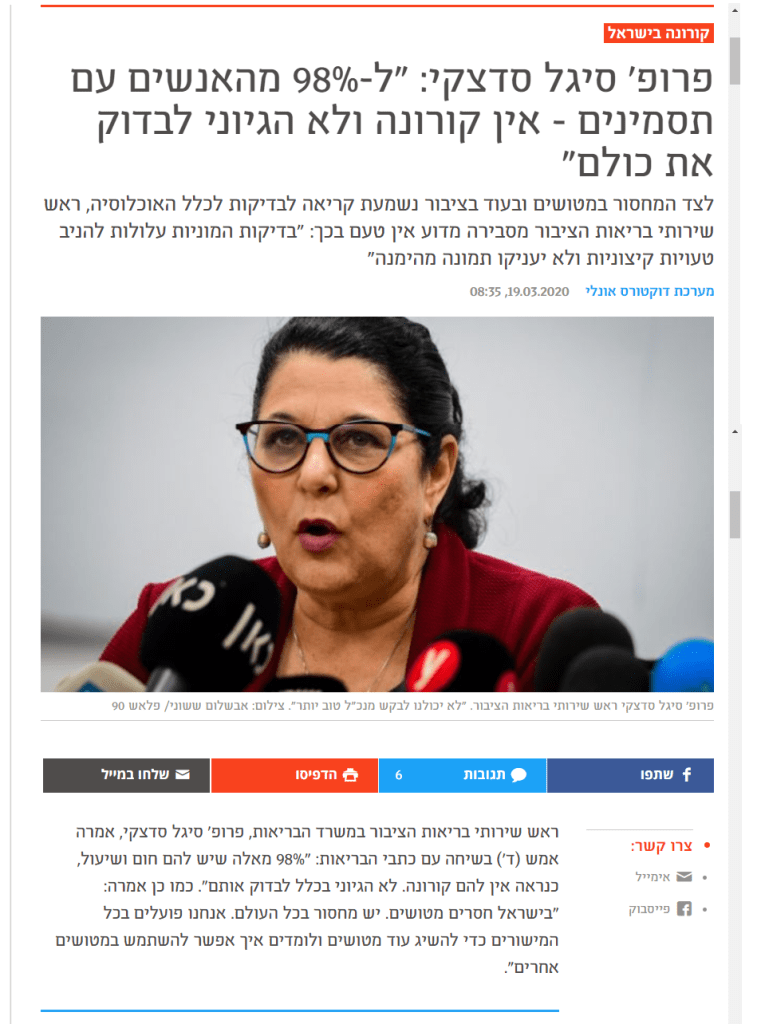 אם אתם חושבים שהדברים מתנהלים כשורה במשרד הבריאות… תקראו גם את מה שאמר המשנה למנכ"ל משרד הבריאות, פרופסור גרוטו ב- 22.03.20 ב Ynet: