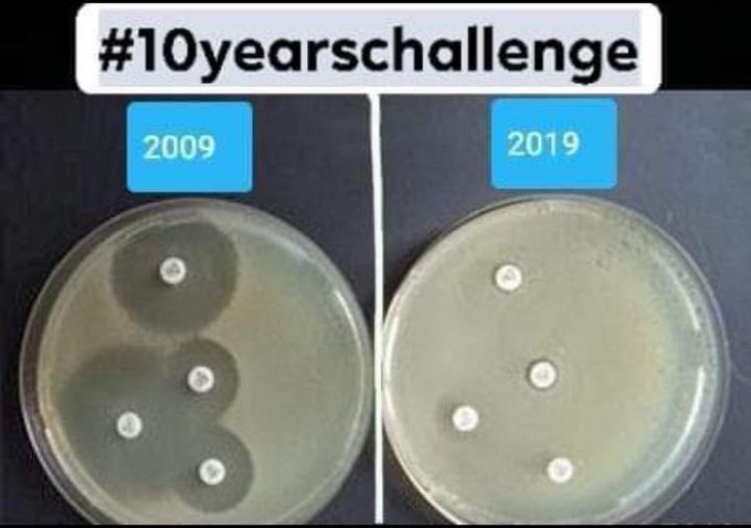 התמונה שלמטה צולמה על ידי רופאה בשם kate flavin במסגרת הפרויקט של צילומי 2009 לעומת 2019. היא לא בחרה לצלם את עצמה, אלא את אחת הבעיות המטרידות ביותר בעידן הנוכחי את: עמידות החיידקים לאנטיביוטיקה!!!