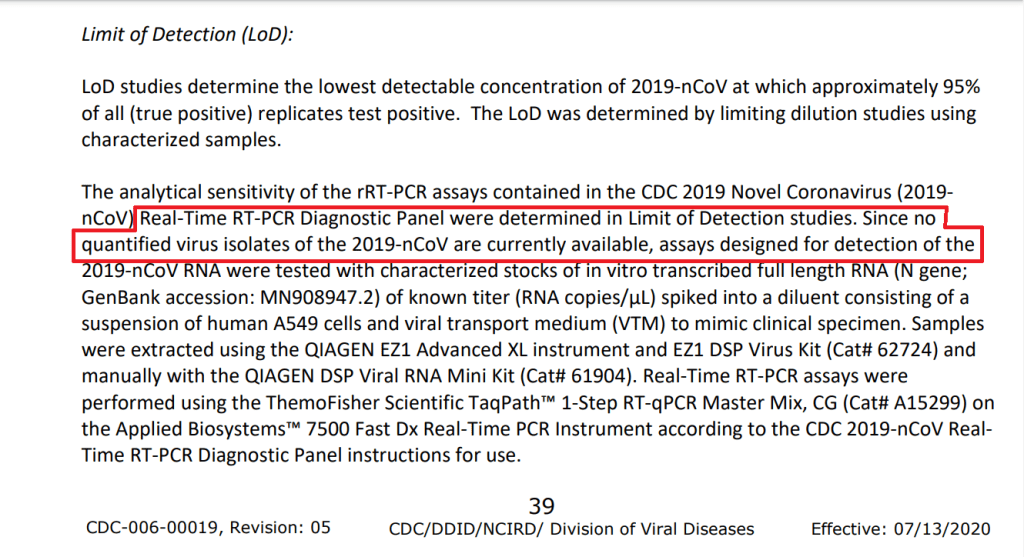 והבדיקות (PCR) הלא אמינות בלשון המעטה שלא מיועדות בכלל לשימוש של אבחנה אלא אך ורק לצורכי מחקר.