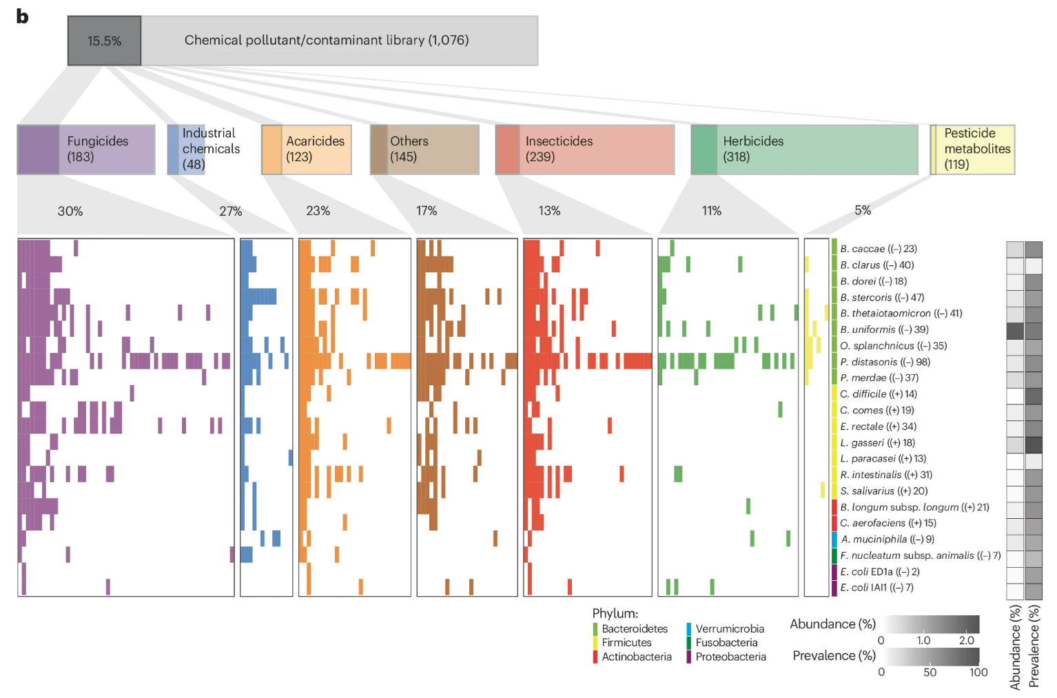מחקר חלוצי שפורסם בנובמבר 25 בכתב העת Nature Medicine מספק הוכחה מכניסטית ישירה ומדליק נורה אדומה לגבי ההשפעה של חומרים כימיים סביבתיים (מזהמים תעשייתיים וחומרי הדברה) על מיקרוביום המעי האנושי. החוקרים ביצעו את המחקר מתוך הבנה כי חומרים כימיים המיועדים לחקלאות ולתעשייה נחשבים בעלי פעילות ביולוגית מוגבלת, אך קיים חשש גובר לגבי טווח הרעילות הרחב שלהם והשפעתם על חיידקי המעי.