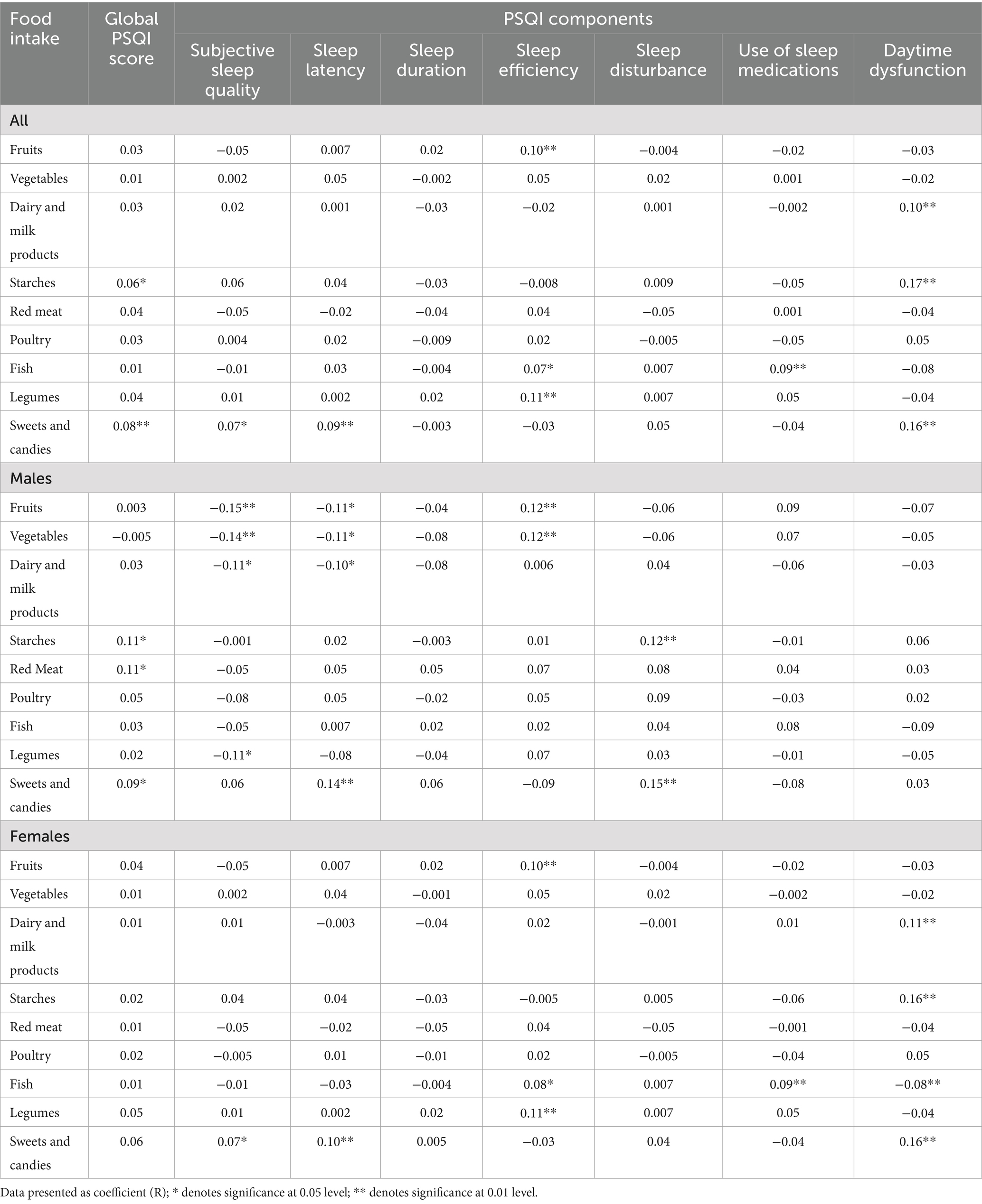 - צריכה של דגים, קטניות ופירות נמצאה קשורה באופן חיובי ליעילות שינה טובה יותר בשני המינים.