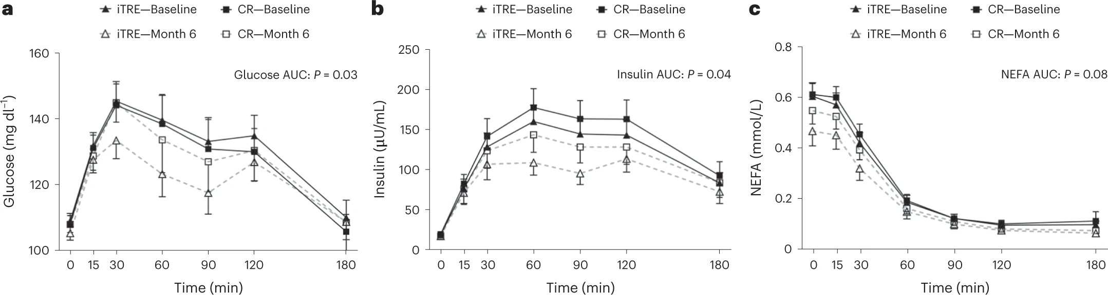 המחקר העריך גם את רמות הגלוקוז בצום ו-24 שעות ביממה באמצעות מוניטור גלוקוז רציף שלבשו המשתתפים במשך 14 ימים לפני ובסיומה של ההתערבות. התוצאות הראו שקבוצת הצום המוקדם שיפרה משמעותית את רמות הגלוקוז בצום וגלוקוז הלילה בהשוואה לקבוצות האחרות. ממצאים אלו מצביעים על כך שצום מוקדם עשוי להיות מועיל במיוחד באופטימיזציה של ויסות הגלוקוז, שעשוי לסייע במניעת סוכרת ובשיפור הבריאות המטבולית. ההסבר לכך הוא שאי אכילה בלילה מאפשרת לגוף יותר זמן לעכל ולעבד חומרים מזינים, ובכך מפחיתה את הסיכון לפתח בעיות סוכר והפרעות מטבוליות אחרות.