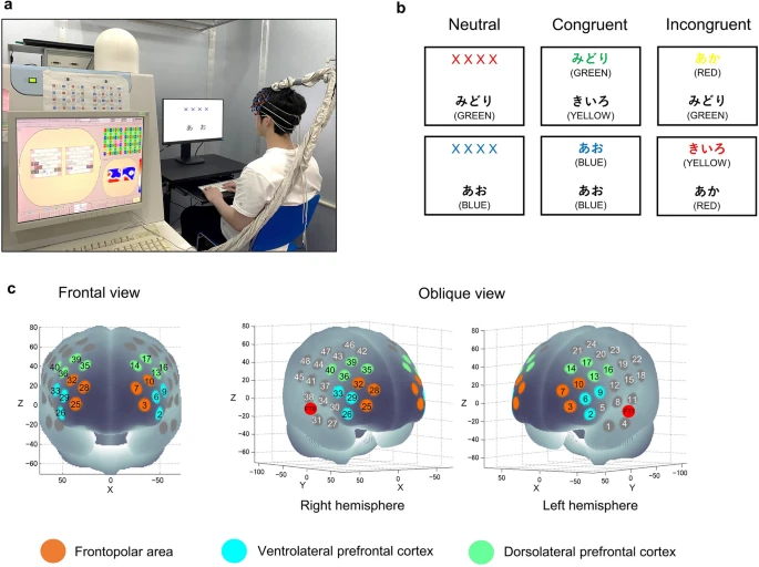 כדי לבחון את ההשערה שלהם, צוות המחקר השתמש במבחן Stroop Color-Word וקלטו נתונים על שינויים המודינמיים (פעילות מחזור הדם), באמצעות ספקטרוסקופיה פונקציונלית ליד אינפרא אדום) הקשורים לפעילות המוח בזמן שהמשתתפים היו מעורבים בכל משימה דרך נחקרו באמצעות ספקטרוסקופיה פונקציונלית אינפרא אדום.