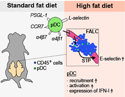 כתוצאה מהתרחבות תאי השומן והפעילות החיסונית המוגברת, רקמת לימפה שלישונית מתחילה להיווצר, שבה pDCs מתזמרים את המערכת החיסונית ומשפיעים על חילוף החומרים. כעת pDCs מתערבים בצורה חריפה בחילוף החומרים, ויוצרים תסמונת מטבולית שכן ה-pDCs בשומן הקרביים נמצאים במצב כוננות מתמיד. כלומר נוצר מצב שמערכת החיסון רואה את ההשמנה כבעיה חמורה שדורשת תגובה חריפה.