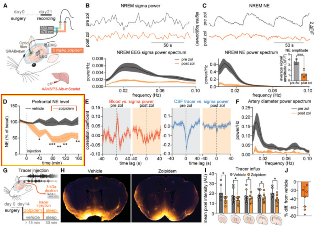 מחקר שפורסם בינואר 25 בכתב העת Cell בהובלת חוקרים מאוניברסיטת Rochester, מתאר לראשונה את התנודות המסונכרנות בין הנוירוטרנסמיטר נוראפינפרין, דם מוחי ונוזל מוחי (CSF) המשתלבות במהלך שינה (Non-REM) בעכברים, המעבר משינה קלה לעמוקה. תנודות אלו מניעות את המערכת הגלימפתית (glymphatic system) – רשת מוחית שאחראית על פינוי פסולת חלבונים, כולל עמילואיד וטאו, הקשורים למחלות ניווניות עצביות.