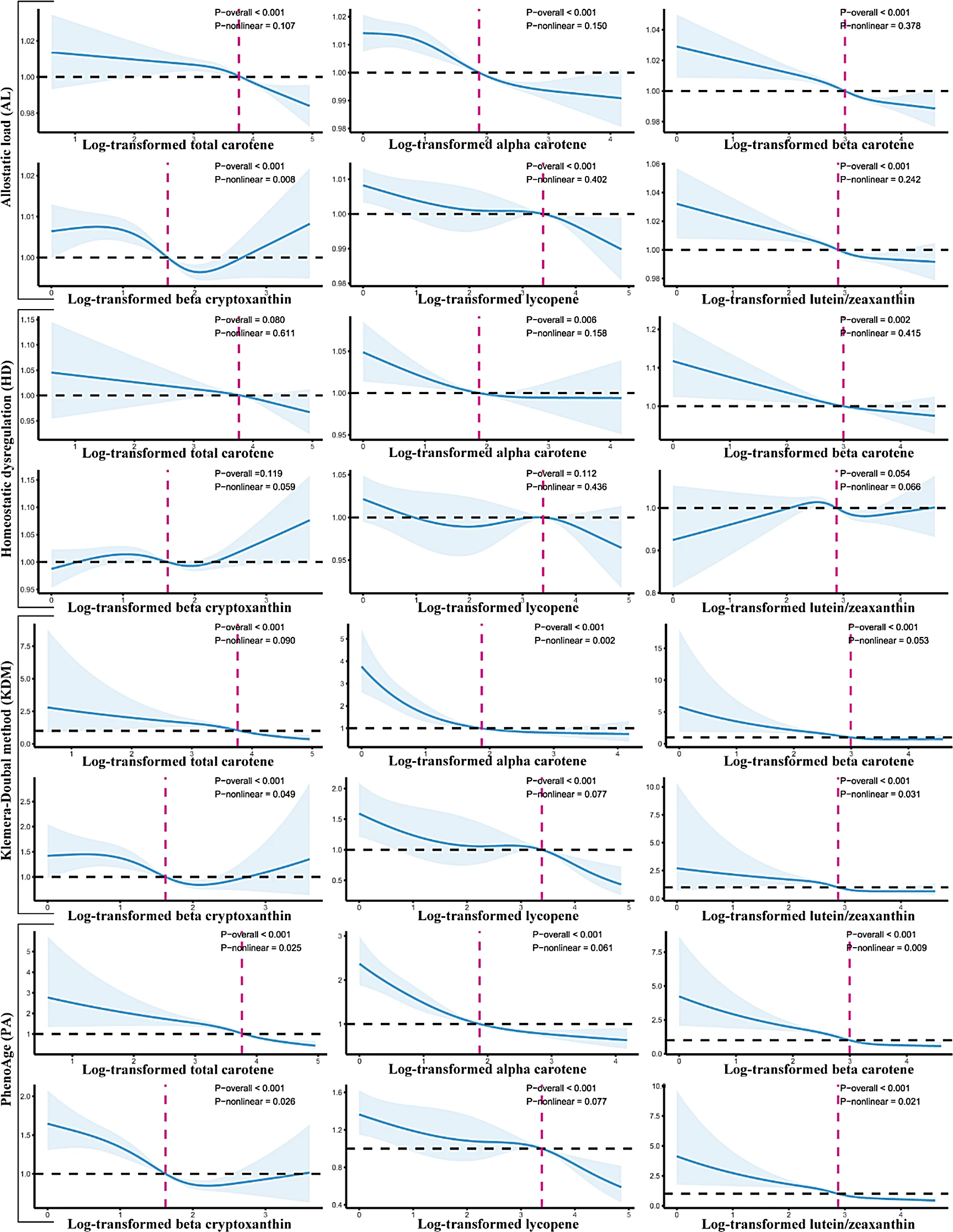 שני המודלים המעורבים הצביעו באופן עקבי שלתערובות קרוטנואידים יש מתאם שלילי משמעותי עם ההשפעה המשולבת על ההזדקנות הביולוגית, ומדגישים שרמות גבוהות של צריכת לוטאין/זאקסנטין ו-β-קרוטן עשויות למלא תפקיד מכריע בהפחתת מדדי ההזדקנות הביולוגיים.